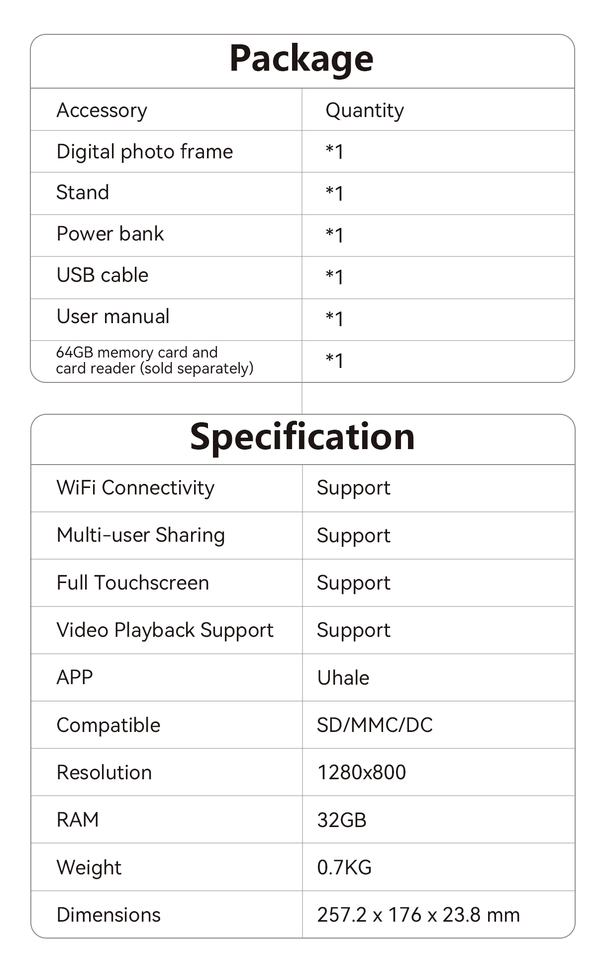 - All-in-One Audio-Visual, Immersive: Supports various photo and video formats, and its built-in high-quality speakers provide an immersive audio-visual experience.
