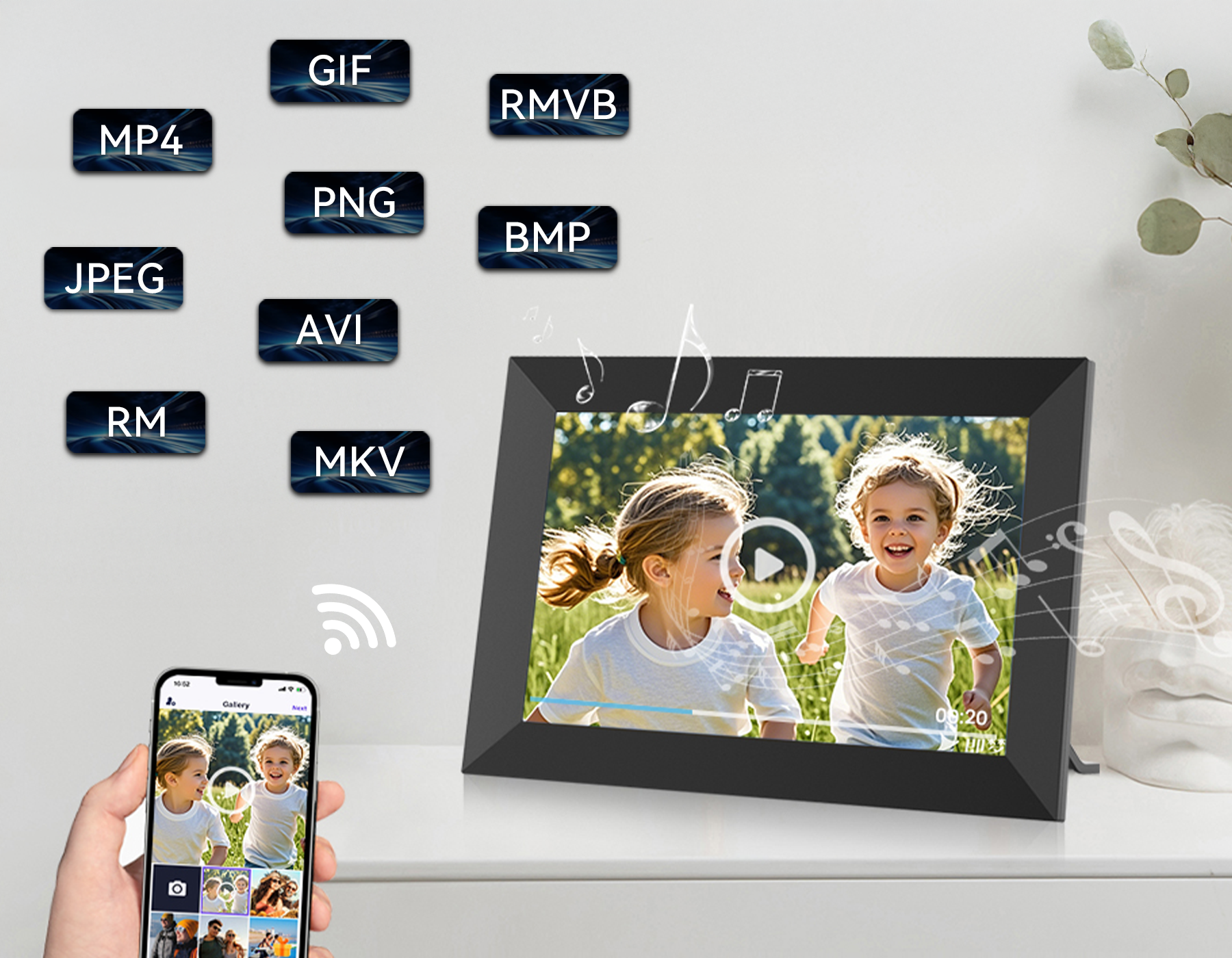 Make your slideshows more dynamic. The Vassco smart photo frame supports HD video playback, and automatically transitions between photos and videos smoothly and seamlessly. It's the perfect blend of a photo's static beauty and a video's dynamic energy, giving you a complete audiovisual feast.